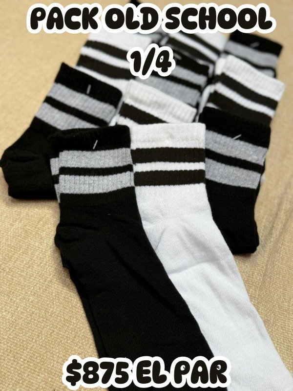 Un pack pensado para esos clientes que aman el estilo retro, deportivo y súper combinable. Estas medias 1/4 de caña llegan con la mítica base blanca y líneas de colores fuertes: rojo, azul, verde y amarillo, creando ese look vintage que siempre se vende.