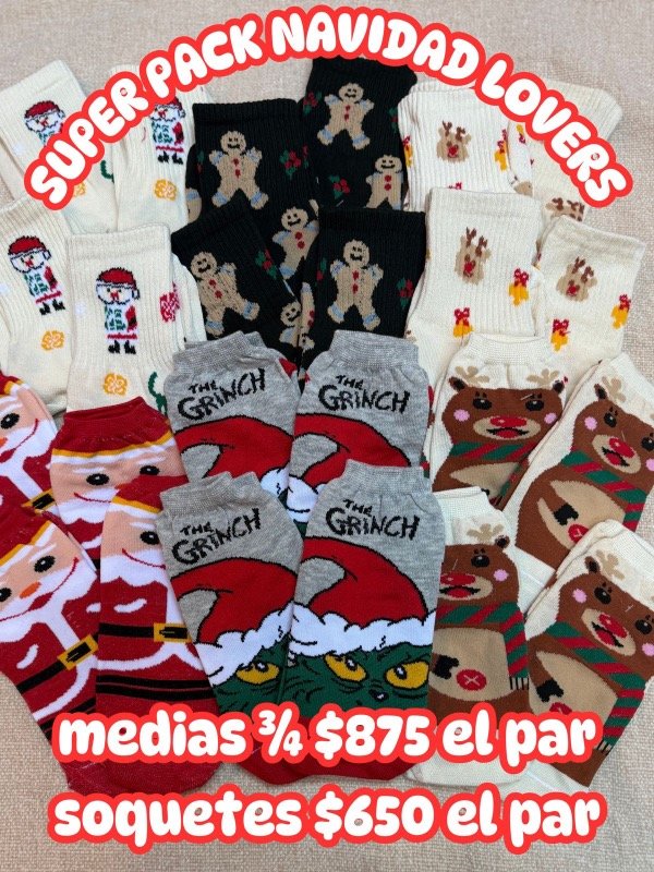 🧦 12 pares de medias 3/4 navideñas (modelos surtidos)