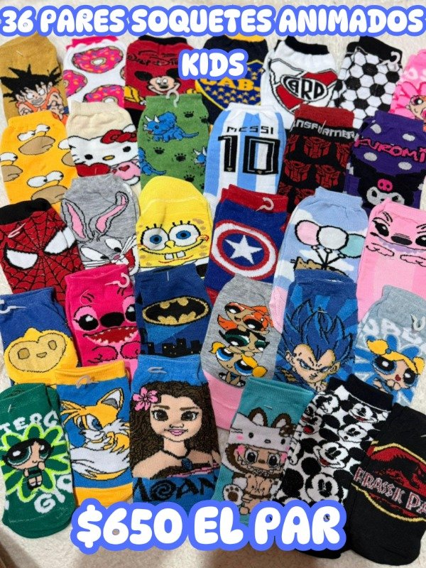 🚀 Pack Mayorista – 36 pares de soquetes animados KIDS 🚀