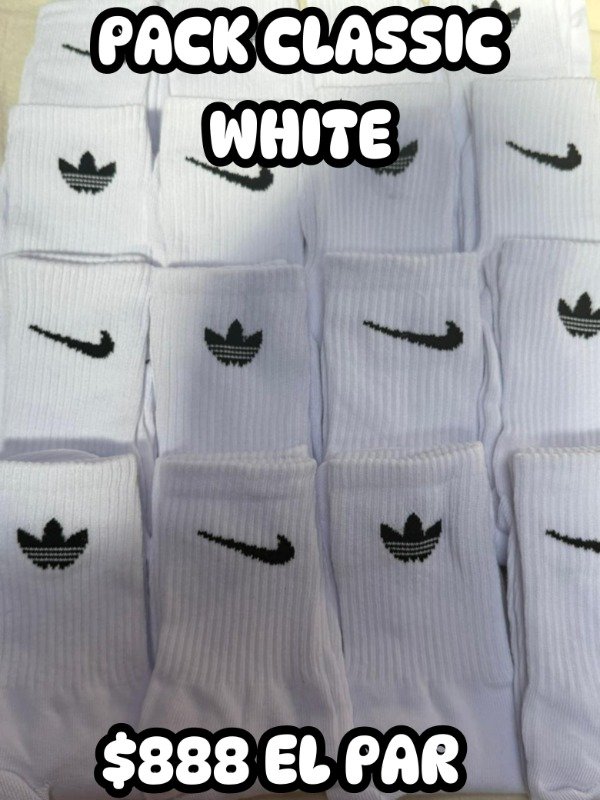 Un pack de medias tenis 3/4 en blanco con detalles negros, combinando lo mejor de Nike y Adidas en modelos súper cómodos y versátiles.