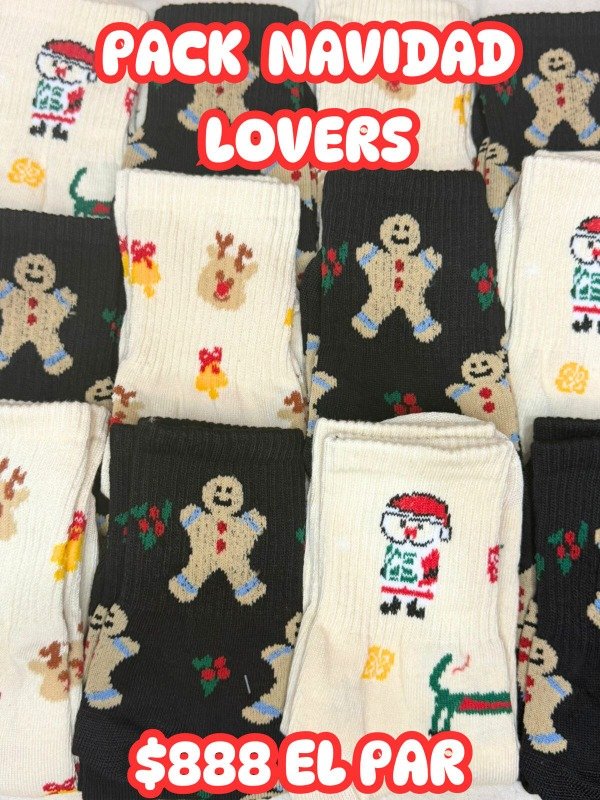 12 pares de diseños de Papá Noel, gingerbread, renos y detalles navideños en tonos crema y negro que combinan con TODO.