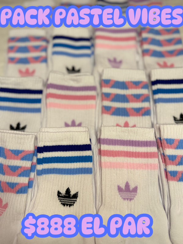 Docena de medias deportivas tipo tenis, con diseño inspirado en Adidas. Confeccionadas en 90% algodón, súper cómodas, suaves y con excelente calce.