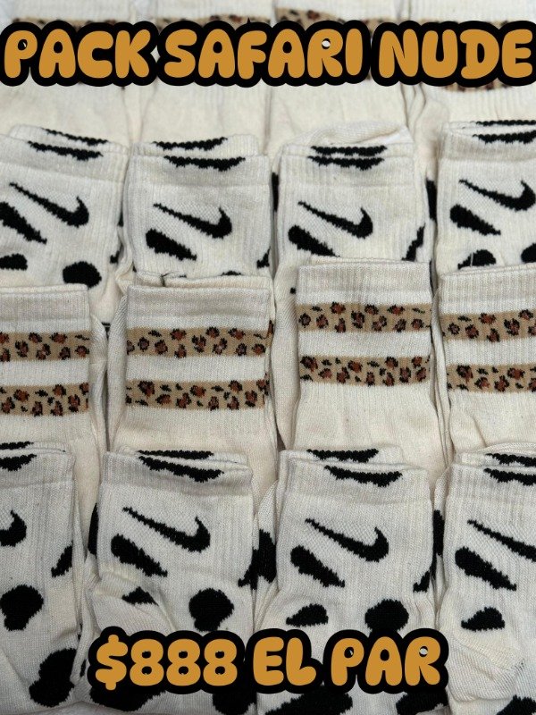 Un clásico reinventado con estilo. Este combo une lo mejor del diseño deportivo con el toque salvaje del animal print. Medias 1/4 con estampa tipo vaquita en tonos nude y negro, y medias tenis 3/4 nude con líneas animal print: una mezcla perfecta entre lo urbano y lo chic.