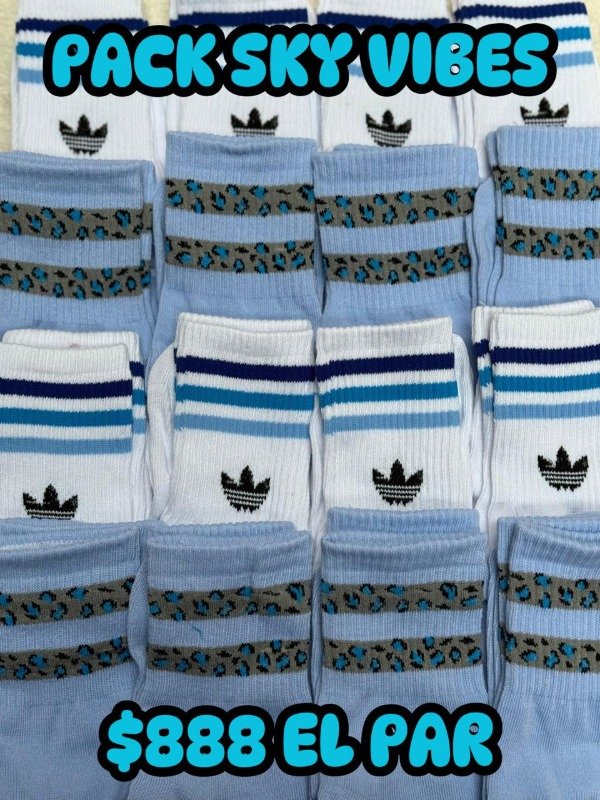 Fresco, moderno y con mucha onda. Un mix ideal que combina diseño deportivo y detalles animal print en tonos celestes y neutros. Incluye medias tenis 3/4 con el clásico estilo de franjas y logo, junto con modelos animal print celestes que le dan un toque fashion a cualquier look.