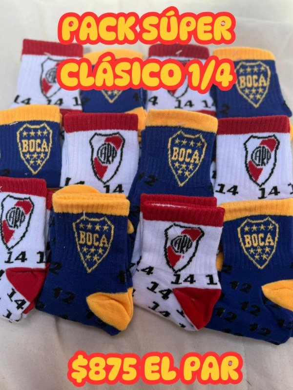 Para los fanáticos de verdad. Este pack combina dos clásicos del fútbol argentino en medias 1/4, cómodas, suaves y de excelente calidad.