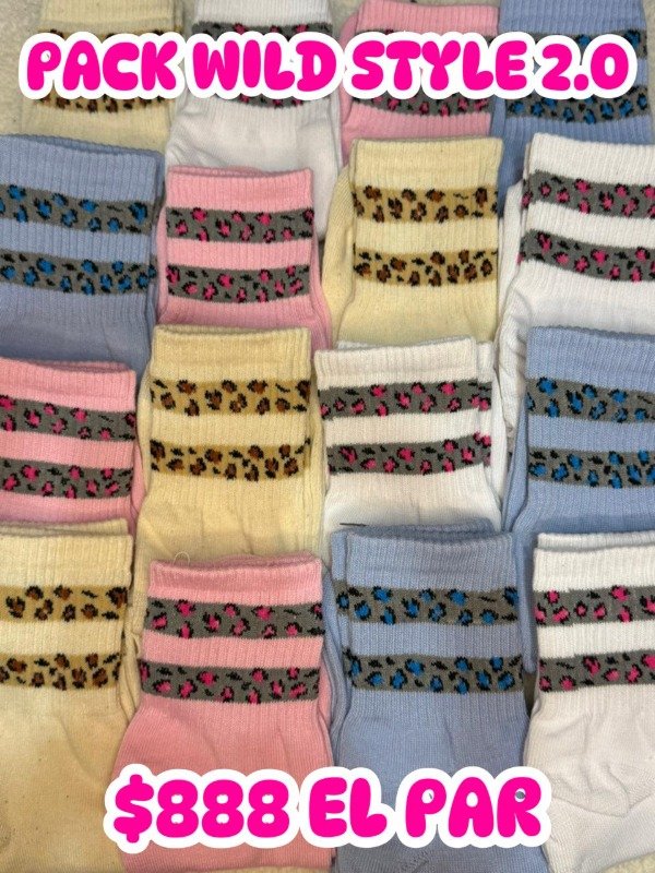 La versión renovada del clásico más salvaje. Medias tenis 3/4 90% algodón con diseño animal print en tonos pastel: rosa, celeste, nude y blanco. Una combinación perfecta entre lo dulce y lo atrevido, ideales para sumar color y estilo a tus outfits diarios.